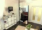 Комната в данном проекте решена в черно-белой гамме. Белые с перламутровым глянцем стены, блестящий черный пол, зеркальная ширма, аксессуары и текстиль - все работает на стиль "Домино".